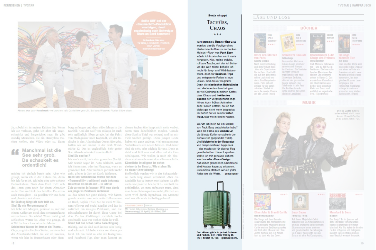 Unser Flow Cabin Trolley als Star in der Schweizer Illustrierte.